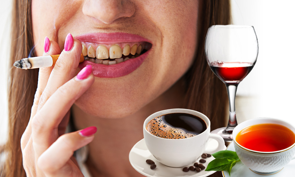 Nicotine, coffee, wine, tea, and food leave stains and discoloration on your teeth.