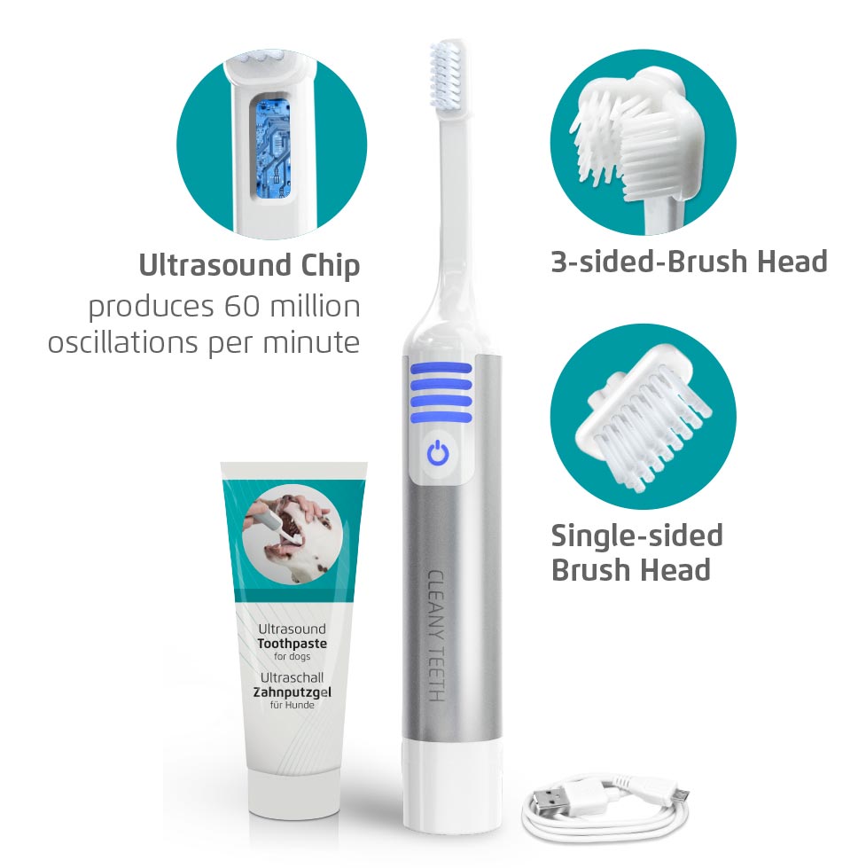 CleanyTeeth per cani è la soluzione al problema di salute numero 1 dei cani. È un dato di fatto che l’80% di tutti i cani di età superiore ai tre anni soffre di parodontite, l’infiammazione delle gengive dovuta all’accumulo di tartaro. Prendersi cura delle gengive del tuo cane è vitale per prevenire la parodontite e prolungare la loro salute. Lo spazzolino per cani CleanyTeeth pulisce l’area della mascella superiore e inferiore in soli 45-60 secondi, uccidendo i batteri e minimizzando/eliminando la formazione del tartaro.